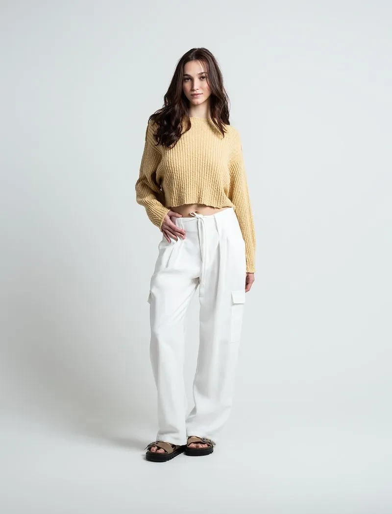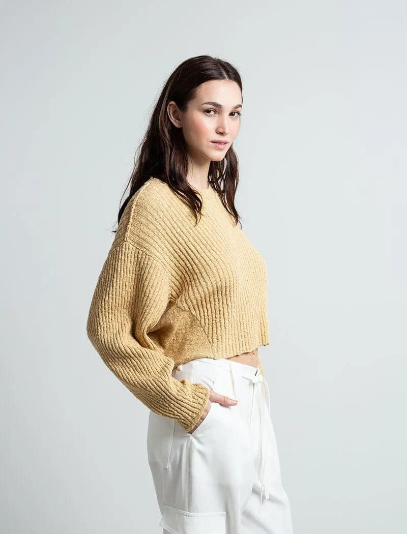 Buzo tejido cuello redondo • Diseño cerrado. • Largo pretinero. • Tejido con textura. • Manga tipo mariposa. • Ideal para usar en tus planes casuales con amigos y familia. *Algunas pantallas pueden alterar el color real de la prenda. *La modelo usa un tejido talla S.